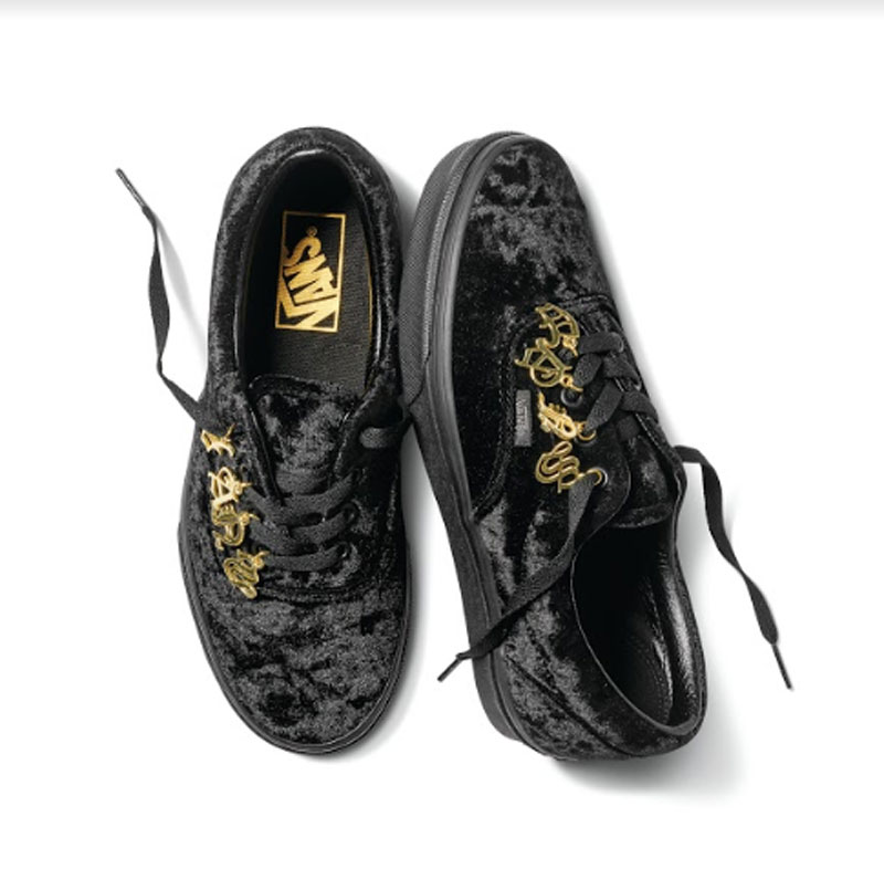 Mengambil inspirasi dari papan nama dekoratif, tiap model dilengkapi sentuhan tali hitam berbahan katun dengan hiasan aksen emas bertuliskan ‘Vans.’