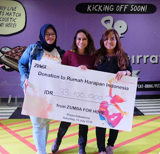 Seluruh dana yang berhasil terkumpul sebesar 34 juta rupiah pada acara Zumba for Hope diberikan kepada Rumah Harapan Indonesia yang diwakilkan oleh Valencia Mieke Randa. “Hal ini merupakan barometer positif yang menunjukkan antusiasme dan tingkat kepedulian yang tinggi dari masyarakat untuk peduli kepada sesama melalui kegiatan olahraga yang menyehatkan dan menyenangkan.” ujar Valencia Mieke Randa dari Rumah Harapan Indonesia.