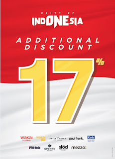 “Melalui tema Unity of Indonesia, Mezzo dan merek-merek fesyen yang ikut serta dalam promo ini menawarkan additional diskon sebesar 17% untuk semua produk dengan harga normal dan produk diskon dengan maksimal 30% selama periode 1 sampai 16 Agustus 2019, khusus untuk brand Keds®, Wakai, Paul Frank dan Stӧd baru akan ikut serta di tanggal 9 Agustus,” ujar Yoycia Sakul, Brand Manager Mezzo.
