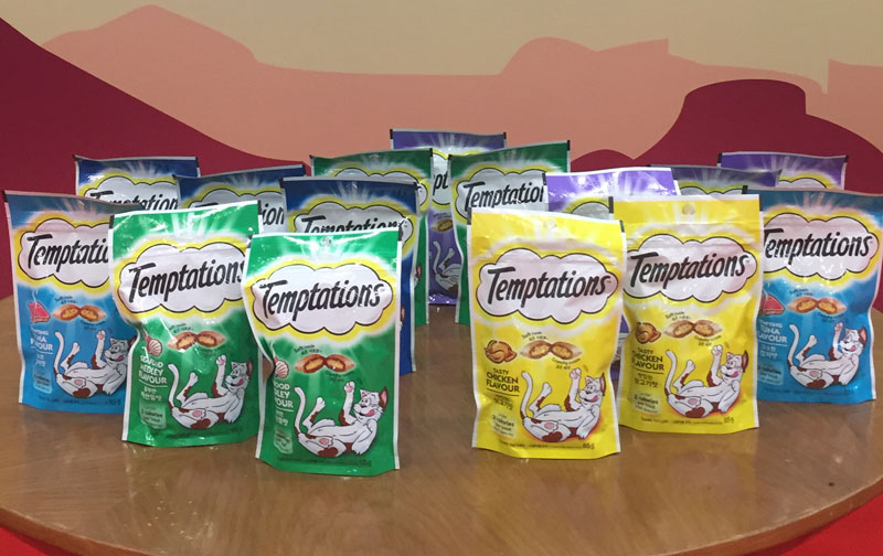 Temptations berusaha untuk bisa menjadi solusi pagi para pencinta Kucing Indonesia untuk mendapatkan camilan yang enak dan bergizi, Kini Temptations menawarkan rangkaian lengkap rasa favorit kucing: Creamy Dairy, Tasty Chicken, Tempting Tuna, Savory Salmon, Seafood medley dengan beragam varian tentu akan menjadikan Temptations sebagai camilan Idaman bagi kucing.
