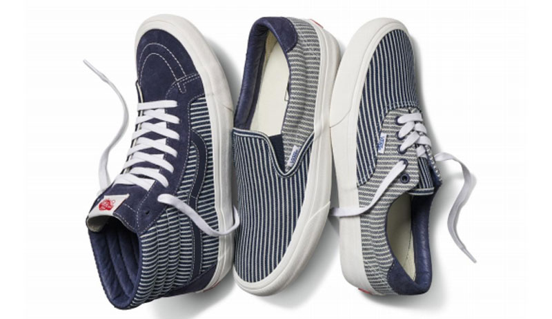 Dalam koleksi Vault by Vans Hickory Stripe,siluet sepatu Vans-Era LX, Sk8-Hi LX dan Classic Slip-On LX juga tampil dalam balutan material twill ternama dari Pabrik Mount Vernon Mills. Dipertegas dengan motif garis yang dikombinasikan dengan warna biru denim dan broken white pada siluet sepatu Vans-Era LX dan Classic Slip-On LX serta lambang siluet khas Vans yang tersemat pada sepatu Sk8-Hi LX membuat koleksi ini terlihat minimalis dan klasik.