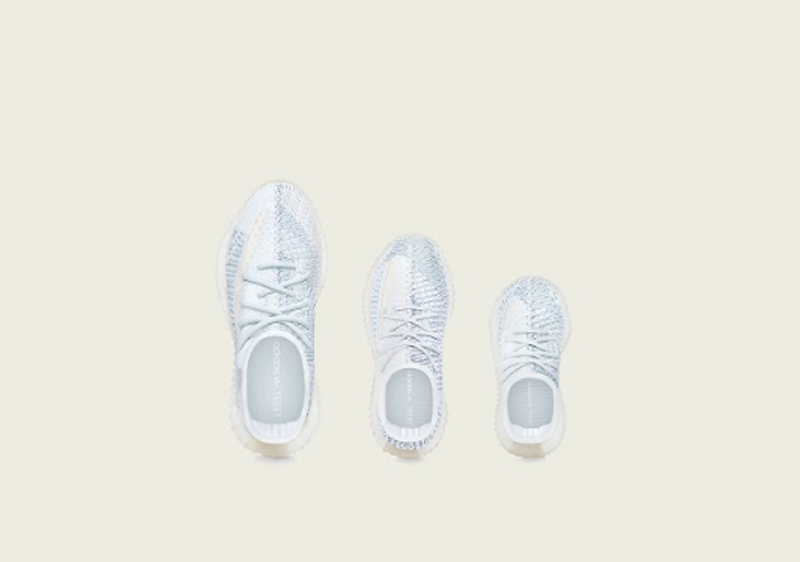 Sepatu YEEZY BOOST 350 V2 Cloud White dirilis dalam ukuran dewasa pada tanggal 21 September di toko adidas Pacific Place, adidas Neo SOHO dan toko spesialis INVINCIBLE Pacific Place, ODD Grand Indonesia, HIDE Plaza Senayan, serta secara online di shop.adidas.co.id.