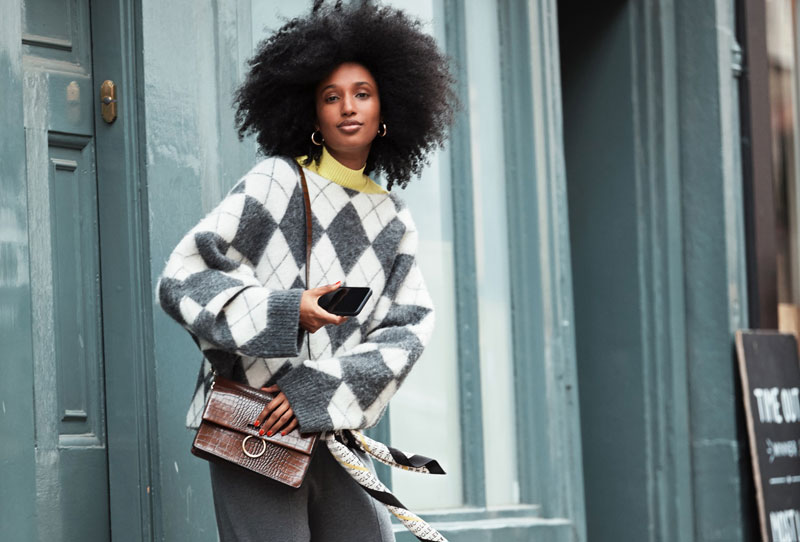 Desain argyle dan jacquard dari Pringle of Scotland sangat terlihat di koleksi ini – dicampur dengan sentuhan halus. Potongan utama termasuk sweater yang menawarkan patchwork dan tekstur, menyambung pola berlian terinspirasi masa retro dengan wol heavy ribbed, dan jumper cropped, berleher ramping dengan lengan balon.