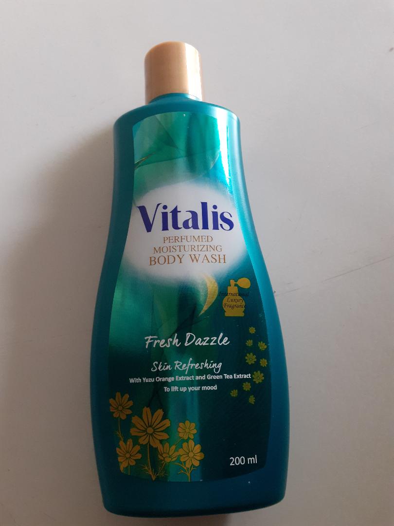 Sedangkan Vitalis Perfumed Moisturizing Body Wash Fresh Dazzle memberikan manfaat skin refreshing, wanginya memadukan aroma bergamot, floral bouquet yang feminin dan musk amber.