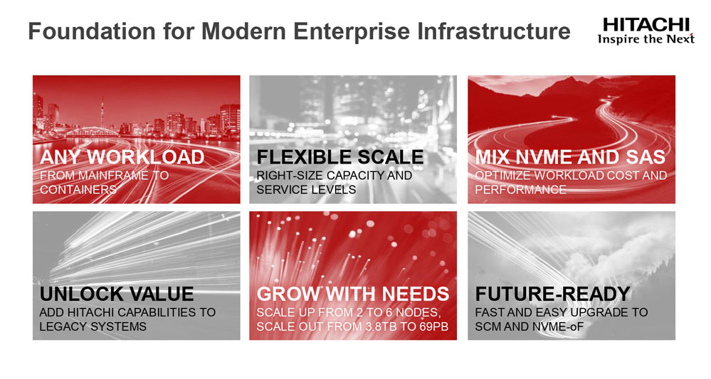 Solusi ini terdiri dari Hitachi Virtual Storage Platform (VSP) 5000 series, storage array kelas enterprise terbaru dan tercepat di dunia1, software manajemen Hitachi Ops Center, dan Hitachi Storage Virtualization Operating System yang telah diperbarui.