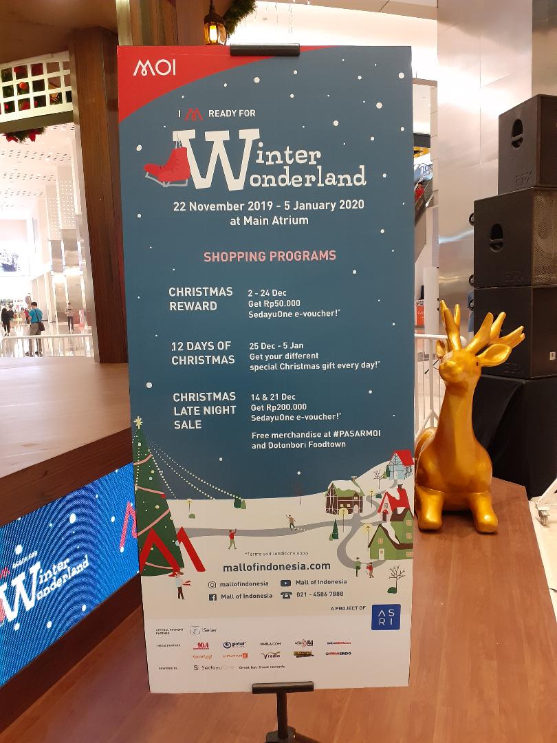 Selain menghadirkan beragam event menarik, Mall of Indonesia juga mengadakan program belanja. Cara mengikuti program belanja ini adalah dengan berbelanja senilai Rp1.500.000 di seluruh tenant, akan mendapatkan e-voucher belanja SedayuOne periode 2-24 Desember 2019.
