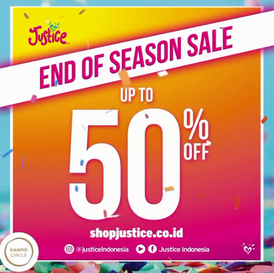 Selama 5 minggu berturut-turut, Justice akan memanjakan para pelanggannya dengan potongan harga sampai 50%. Pada gelaran End of Season Sale ini sang putri dapat memperoleh beragam koleksi Justice yang terdiri dari pakaian, aksesoris hingga stationeries dengan desain menarik dan warna-warna bold yang merepresentasikan karakter anak perempuan masa kini.