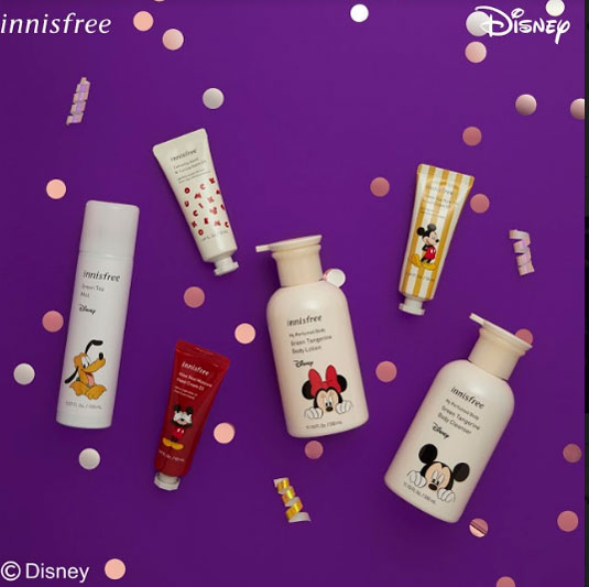 Tak hanya produk skincare, innisfree juga menghadirkan produk-produk perawatan tubuh yang dapat digunakan untuk semua umur seperti My Perfumed Body Green Tangerine Body Cleanser (Mickey Mouse) seharga Rp.180,000, My Perfumed Body Green Tangerine Body Lotion (Minnie Mouse) seharga Rp.210,000, serta Jeju Heritage Hand Cream Set (Mickey Mouse) seharga Rp.277,000.