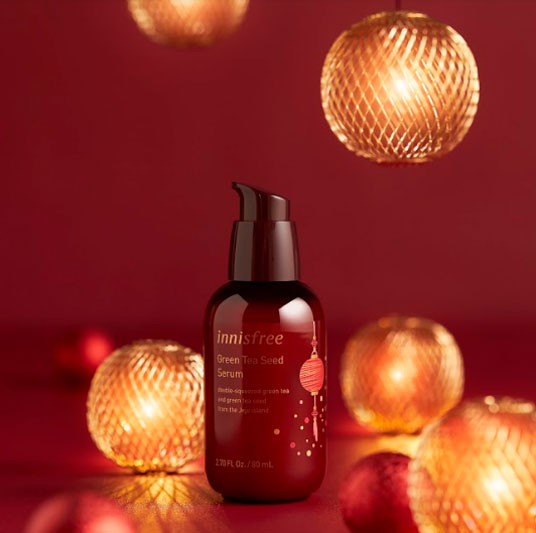 Tahun ini, innisfree merilis edisi terbatas Green Tea Seed Serum dengan kemasan berwarna merah dan ornamen nuansa oriental untuk merayakan tahun baru Imlek bersama para pengguna setia Green Tea Seed Serum.