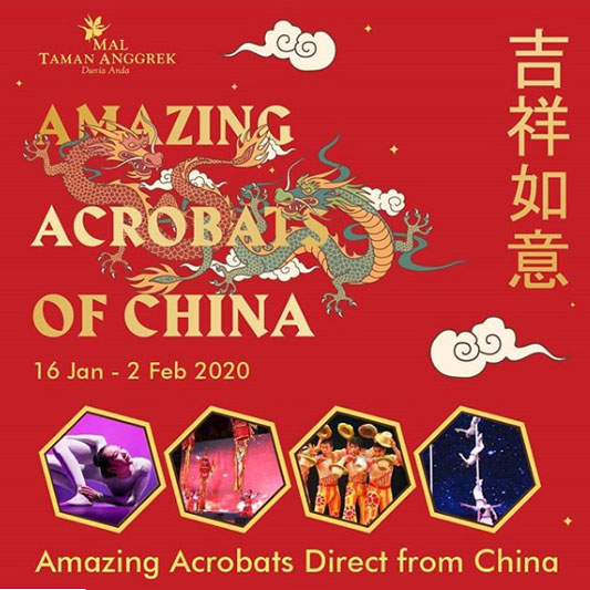 JAKARTA, GANLOP.COM – Menjelang Imlek, tahun ini Mal Taman Anggrek mengangkat tema Amazing Acrobats of China dengan menghadirkan atraksi akrobatik yang pemainnya langsung didatangkan langsung dari Cina mulai dari tanggal 16 Januari hingga 2 Februari 2020.