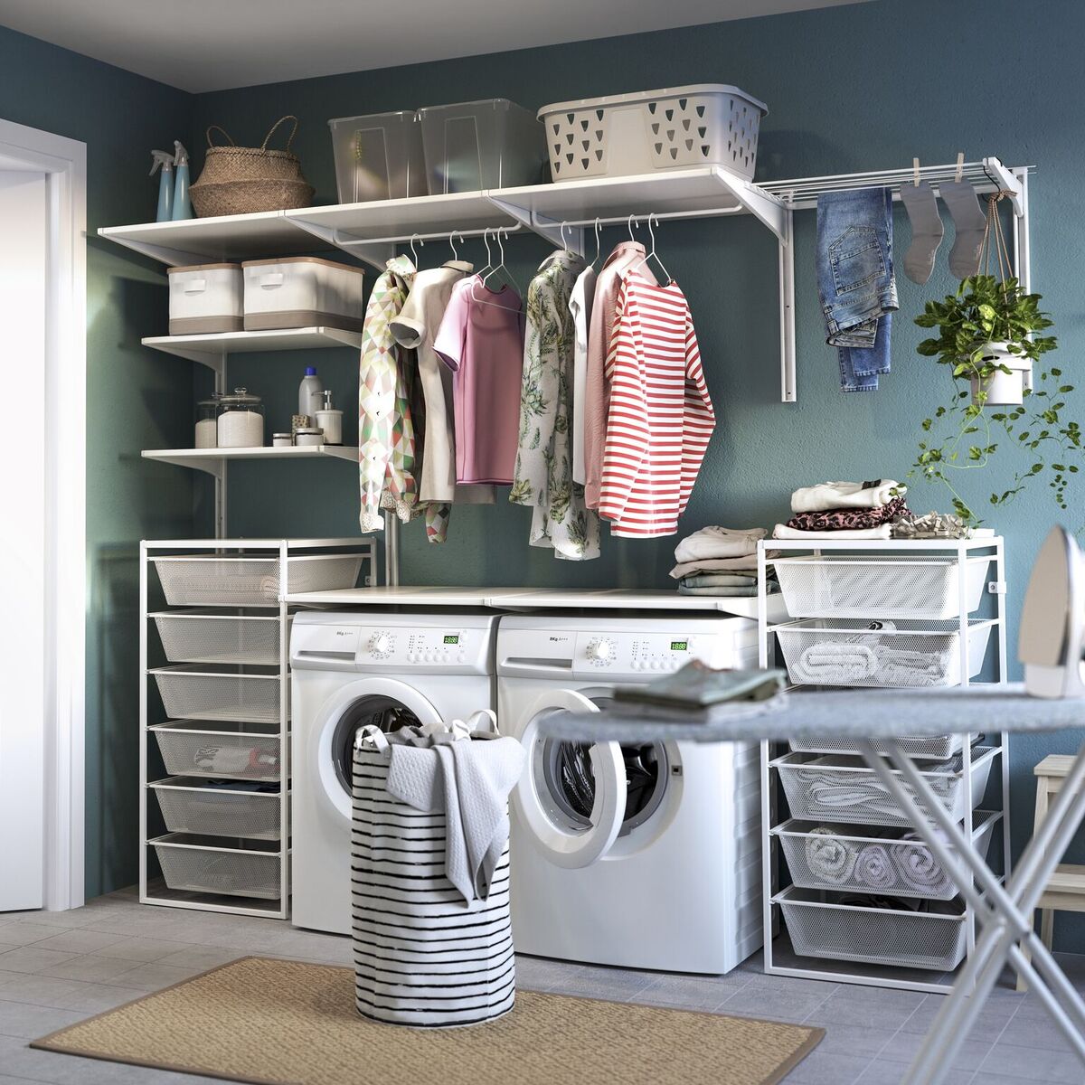 Hemat area lantai Anda dengan memanfaatkan area dinding untuk menyimpan semua kebutuhan. Padukan kotak-kotak penyimpan, laci dan rak dengan skema warna yang serasi untuk menciptakan penataan indah yang mencerminkan diri Anda. Gunakan label untuk memastikan semuanya terorganisir dan mudah ditemukan.