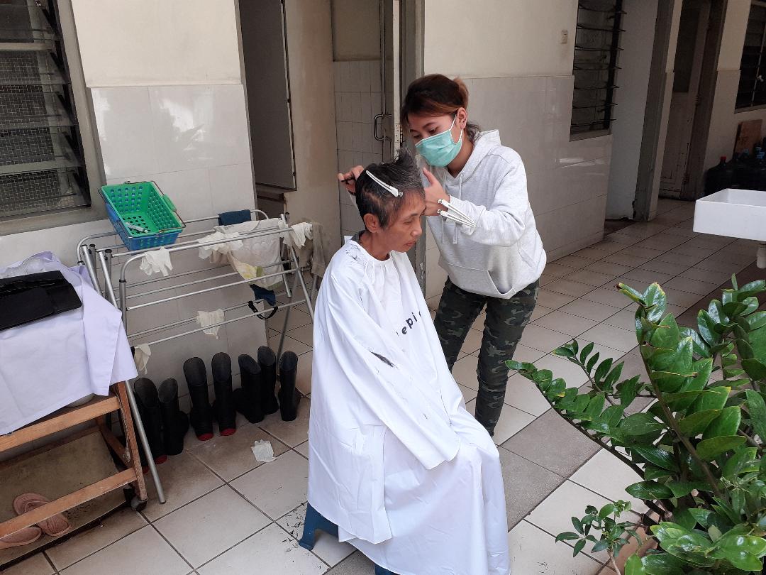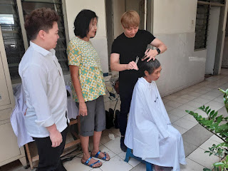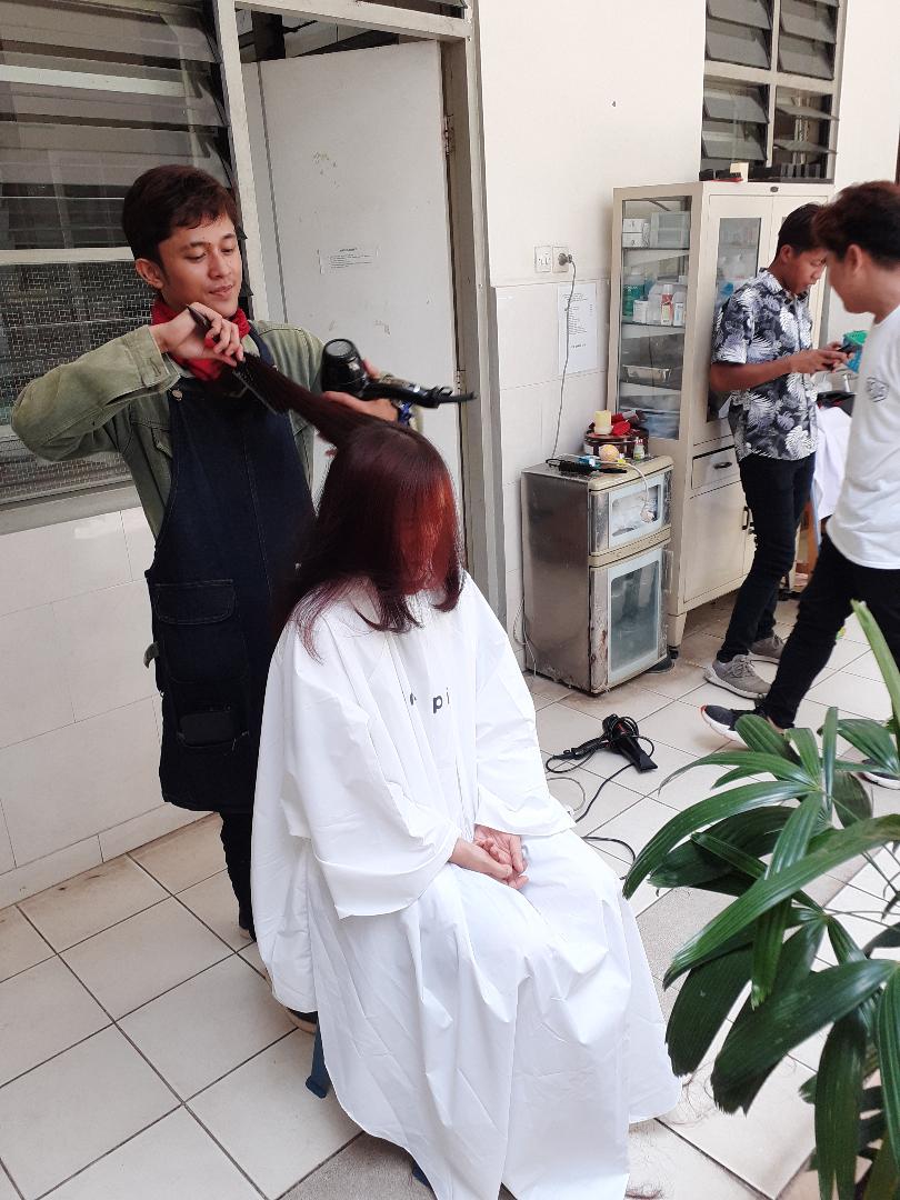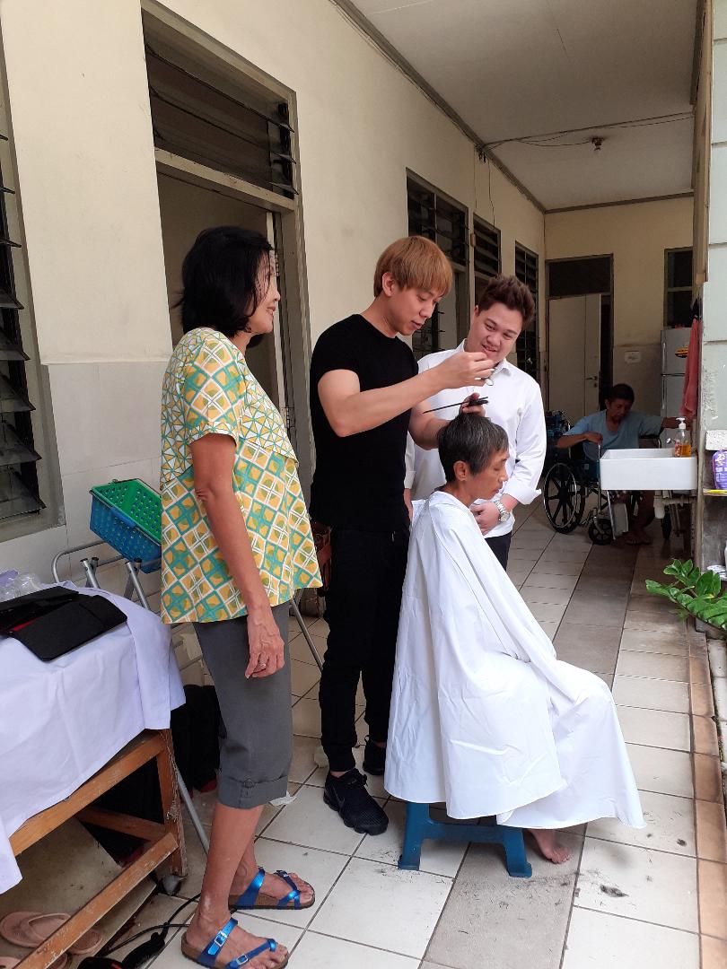 One Piece Hair Studio by Hisato “memboyong” 5 stylist rambut mereka untuk memotong dan merapikan rambut para oma dan opa, serta perawat di Wisma Sahabat Baru. Aksi ini tentu saja disambut dengan sangat antusias dan gembira oleh para penghuni wisma ini.