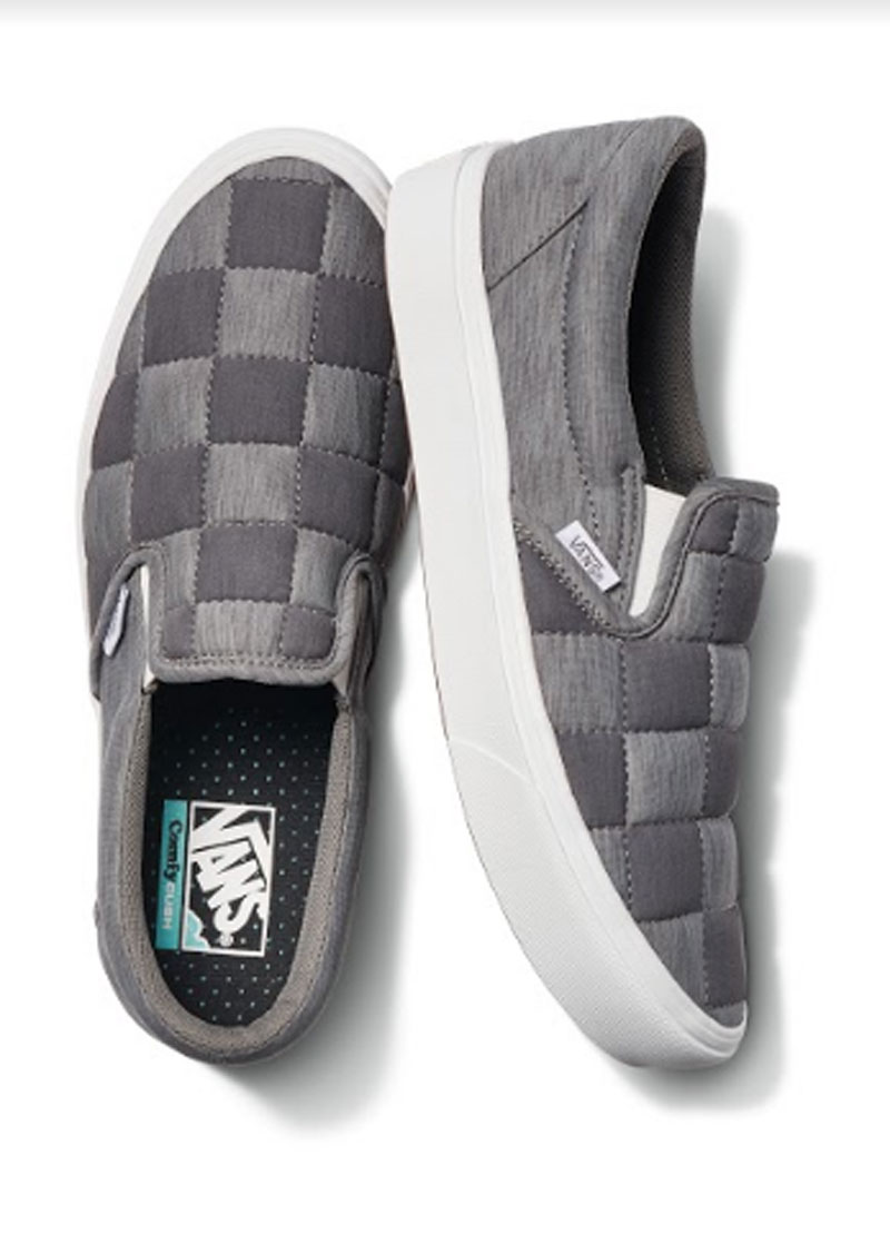 Vans ComfyCush Slip-On PT juga dilengkapi dengan bagian atas yang halus dan empuk berwarna abu-abu lembut dengan tarikan tumit untuk desain sepatu yang mudah dan praktis dikenakan. ComfyCush Slip-On PT edisi ke dua berfokus pada desain yang menampilkan motif air holografik tercetak pada bagian atas sepatu dan material twill biru di bagian samping sepatu.