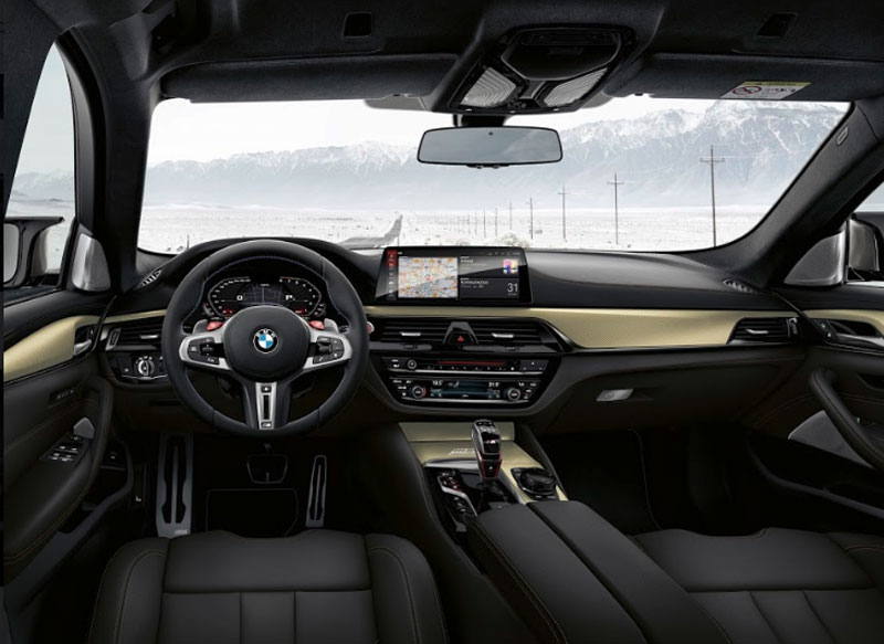 Selain kursi multifungsi M dan BMW Individual Merino trim leather penuh berwarna hitam dengan jahitan kontras berwarna beige, nuansa interior eksklusif diciptakan oleh trim finishers dalam aluminium berstruktur karbon teranodisasi emas – yang dihadirkan untuk pertama kalinya. Permukaan-permukaan yang terstruktur halus dan berkilau ini dapat ditemukan di area panel instrumen, bagian trim pintu serta konsol tengah. Door sill yang bertuliskan “M5 Edition 35 Jahre” dan ukiran “M5 Edition 35 Jahre 1/350” pada penutup cupholder di konsol tengah adalah antara fitur lain yang menonjolkan dan membedakan kendaraan-kendaraan edisi khusus.