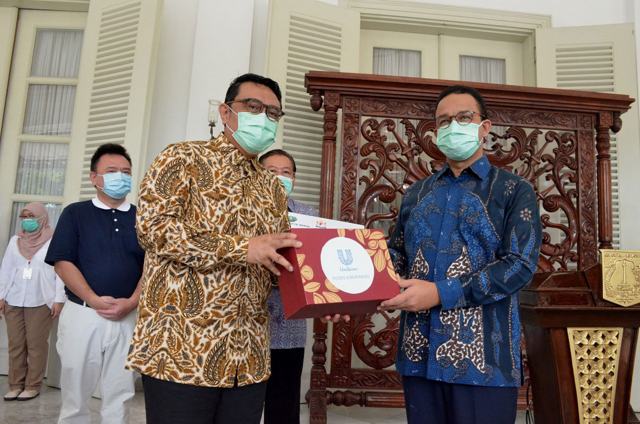 Sebagai perwakilan swasta, kali ini penyerahan bantuan produk Unilever Indonesia diberikan secara langsung oleh Sancoyo Antarikso, Direktur Governance and Corporate Affairs PT. Unilever Indonesia Tbk, dan diterima oleh Gubernur DKI Jakarta, Anies Baswedan.