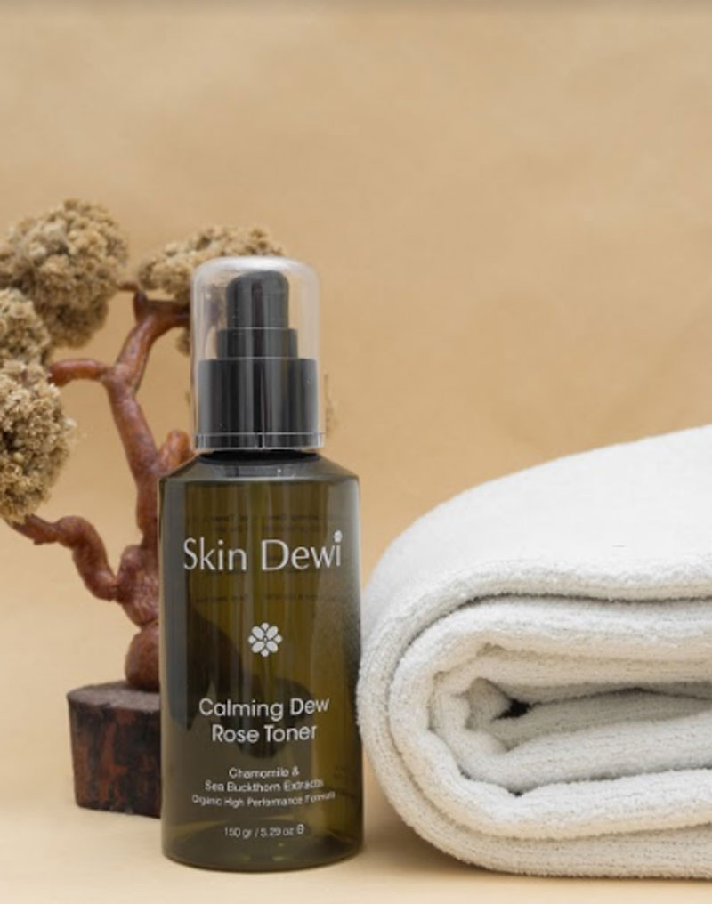 Calming Dew Rose Toner adalah bi-phase toner yang terdiri dari lapisan minyak dan air. Toner ini diformulasikan untuk konsumen yang membutuhkan lebih banyak hidrasi pada kulitnya. Dewi memilih untuk membuat toner ini menggunakan air mawar dan ekstrak jamur putih serta tambahan chamomile untuk efek yang lebih menenangkan. Ekstrak jamur putih juga dikenal sebagai alternatif nabati dari hyaluronic acid. Toner ini tersedia dengan ukuran 150 gram dengan harga Rp. 495.000.