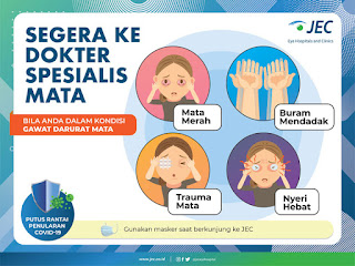 Dengan menjaga mata tetap sehat selama berlangsungnya masa PSBB, Anda pun bisa menjalankan aktivitas #dirumahaja dengan nyaman. Namun, dr. Anna mengingatkan adanya kondisi gawat darurat mata yang perlu diwaspadai, “Apabila pandangan buram secara tiba-tiba, mata merah yang tak mereda, nyeri hebat di sekitar mata, serta terjadi trauma pada mata seperti terbentur, kemasukan benda asing dan zat kimia, segeralah mengunjungi dokter spesialis mata terdekat. Apalagi bagi Anda yang baru mendapatkan tindakan operasi mata.”
