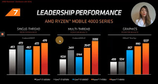 Paige Shi selaku Head of APAC Consumer Business AMD memaparkan bahwa Prosesor AMD Ryzen 4000 terbaru membawa Zen 2 core yang memiliki instruksi per clock lebih tinggi 15% melalui teknologi 7nm dengan densitas transistor ganda, serta konsumsi daya SOC 20% lebih rendah dan performa per watt ganda yang dapat meningkatkan efisiensi daya. Dengan deretan keunggulan tersebut, mengantarkan AMD menjadi perusahaan yang kini memimpin performa mobile baik dalam hal performa grafis, performa multi-thread, dan performa single-thread yang jauh lebih baik dari pesaingnya.