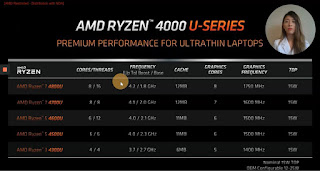 AMD menghadirkan prosesor dengan 8 core 16 thread pertama di dunia untuk segmen ultrathin melalui Ryzen 7 4800U, sebagai salah satu tipe prosesor tertinggi U-Series.Dengan jumlah core yang lebih banyak, prosesor U-Series dapat memberikan performa jauh lebih baik dari generasi sebelumnya. Prosesor U-Series ini telah hadir dengan ragam pilihan seperti AMD Ryzen 7 4800U, Ryzen 7 4700U, Ryzen 5 4600U, Ryzen 5 4500U, dan Ryzen 3 4300U. Semua prosesor tersebut juga sudah memiliki kartu grafis yang terintegrasi, dengan jumlah graphics core mulai dari 6 core hingga 8 core. Prosesor U-Series sendiri juga memiliki daya yang rendah dengan standar TDP 15 watt.Adapun deretan laptop yang membenamkan prosesor ini pada segmen ultra-thin seperti ACER Swift 3, HP Envy, dan Lenovo Slim 7. Performa single-thread, multi-thread, maupun grafik pada prosesor U-Series memiliki peningkatan yang jauh lebih signifikan dibandingkan dengan prosesor lainnya pada kelas yang setara.