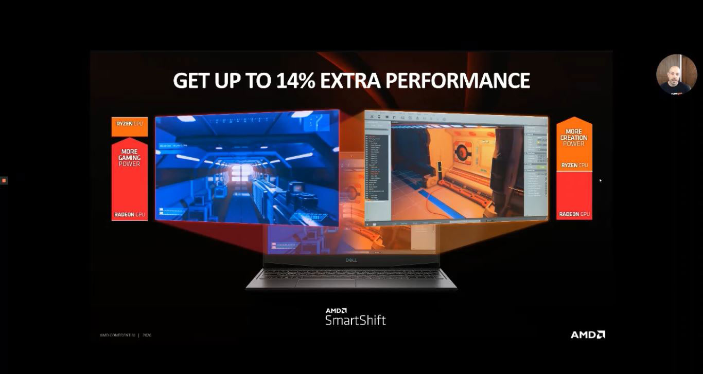 Ada pula AMD SmartShift Technology, sebuah teknologi yang memungkinkan sistem untuk mengatur sistem kerja antara Prosesor (CPU) dan kartu grafis (GPU) yang dapat memberikan peningkatkan performa sebesar 14% pada perangkat yang digunakan. Disamping itu teknologi ini memungkinkan para pengguna untuk mendapatkan sistem kerja antara CPU dan GPU untuk kebutuhan tertentu dan pemrosesannya dapat disesuaikan; baik CPU maupun GPU yang sistemnya juga telah terintegrasi.