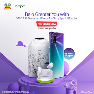 GANLOP.COM – Mulai besok (15/6), OPPO memberikan kesempatan bagi konsumen untuk memesan perangkat OPPO A92 Disney and Pixar’s Toy Story Edition Special Bundling. Perangkat versi limited edition ini hanya dapat dipesan melalui situs e-dagang Tokopedia. Pada edisi ini, OPPO juga memperkenalkan varian warna baru dari A92, Aurora Purple.