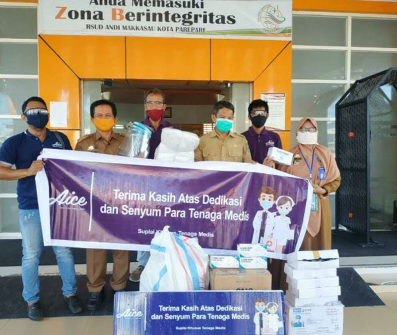 Salah satu distributor di wilayah Parepare, Sulawesi Selatan juga tergerak dalam membagikan APD. Kegiatan yang dilakukan adalah membagikan APD yang berupa kacamata, masker, face shield, baju hazmat dan sarung tangan ke RS Andi Makkasau, Kota Parepare. “Telah terjadi kelangkaan APD di kota kami ini, khususnya di RS Andi Makkasau, maka kami langsung tergerak berinisiatif membagikan APD dalam membantu penanganan pasien Covid 19 disana,” ungkap Irsan Prawiyadi Alfred, Distributor Aice wilayah Parepare.
