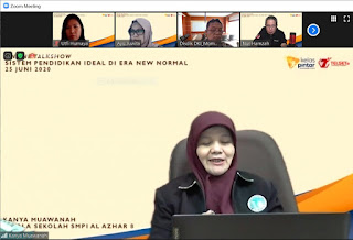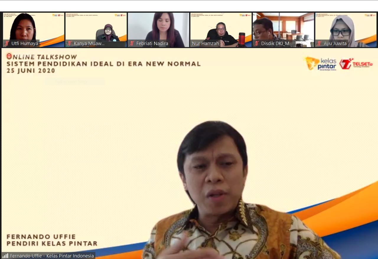 Dalam Talkshow yang berlangsung secara online ini, turut hadir sebagai pembicara Dwie Anyarini Dini Arga, Staf Ahli Bidang Keuangan dan SDM (Perwakilan Pemkot Bekasi), Momon Sulaeman – Kepala Bidang SD dan PKLK Provinsi DKI Jakarta, Fernando Uffie – Pendiri Kelas Pintar, Danang Andrianto – GM Mass Market Segment Product and Proposition Telkomsel , Kanya Muawanah – Kepala Sekolah SMPI AL Azhar 8 Kemang Pratama dan Febriati Nadira – Perwakilan Orang Tua Murid.