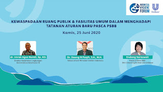 Hal tersebut ditekankan oleh dr. Imran Agus Nurali, Sp, KO. selaku Direktur Kesehatan Lingkungan Kementerian Kesehatan RI, “Menuju masyarakat yang produktif dan terlindung dari virus COVID-19, diperlukan penataan penyelenggaraan berbagai kegiatan dengan prioritas kesehatan masyarakat.