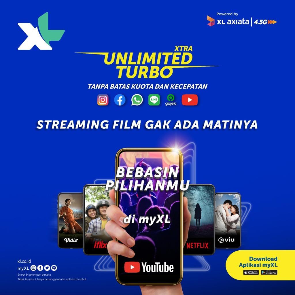 Pada fitur XTRA UNLIMITED TURBO yang baru ini, pelanggan XL prabayar bisa tetap mengakses aplikasi streaming film dan video pilihan tanpa ada batasan kuota dan kecepatan, ketika kuota utama habis. Terdapat berbagai macam pilihan aplikasi streaming baik itu film maupun video yang bisa dipilih oleh pelanggan XL prabayar yaitu Youtube, Netflix, Viu, Iflix, dan Vidio. Pelanggan XL prabayar bisa mengakses layanan terbaru ini mulai 14 Juli 2020 di aplikasi myXL. Bagi masyarakat yang belum menjadi pelanggan XL prabayar bisa mengunjungi retail-retail outlet yang tersebar di seluruh Indonesia untuk bisa mendapatkan penawaran spesial. Untuk keterangan lebih lanjut bisa diperoleh di www.xl.co.id.