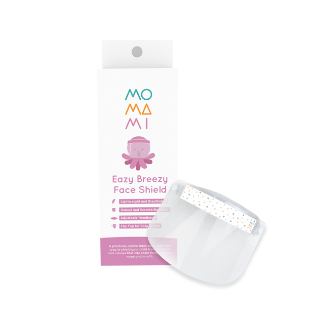 Pelindung wajah dengan bahan ramah anak-anak, melindungi dari droplets virus dan bakteri tidak sampai ke area wajah, desain dan bahan yang nyaman serta sangat praktis untuk dipakai sang buah hati. Dengan menggunakan pelindung wajag dapat menjaga agar tangan anak tidak menyentuh area wajah. Cotton fleece di bagian dahi dapat dilepas dan dicuci agar tetap selalu bersih dan ukuran headband dapat disesuaikan dengan ukuran kepala bayi.