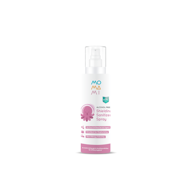 Mengandung active antibacterial agents yang memiliki fungsi ganda selain membersihkan sekaligus melindungi kulit dari kuman dan bakteri. MOMAMI Sanitizer Spray merupakan suatu inovasi proprietary formula dari gabungan senyawa garam mineral yang ampuh dalam membunuh kuman, virus dan bakteri dalam hitungan detik. Beberapa kandungan natural yang terdapat di dalamnya diantaranya: acid salts compound yang merupakan senyawa gabungan garam mineral yang terbukti ampuh dalam membunuh virus dan bakteri, pyridinium salts yang banyak digunakan untuk neonatal care, mata dan skin care. Tidak mengandung alkohol dan zat berbahaya seperti klorin, hypoclorous acid dan zat turunannya serta allergen free parfume sehingga tidak menyebabkan iritasi dan alergi. Cairan semprot ini juga food-contact safe yang aman jika bersentuhan dengan makanan atau tertelan.