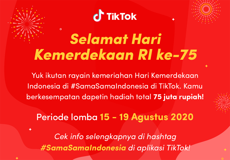 GANLOP.COM – Dalam rangka merayakan Peringatan Ulang Tahun ke-75 Republik Indonesia, TikTok meluncurkan program #SamaSamaIndonesia untuk merayakan keberagaman bangsa Indonesia dan menginspirasi masyarakat untuk bekerja sama mewujudkan Indonesia Maju.