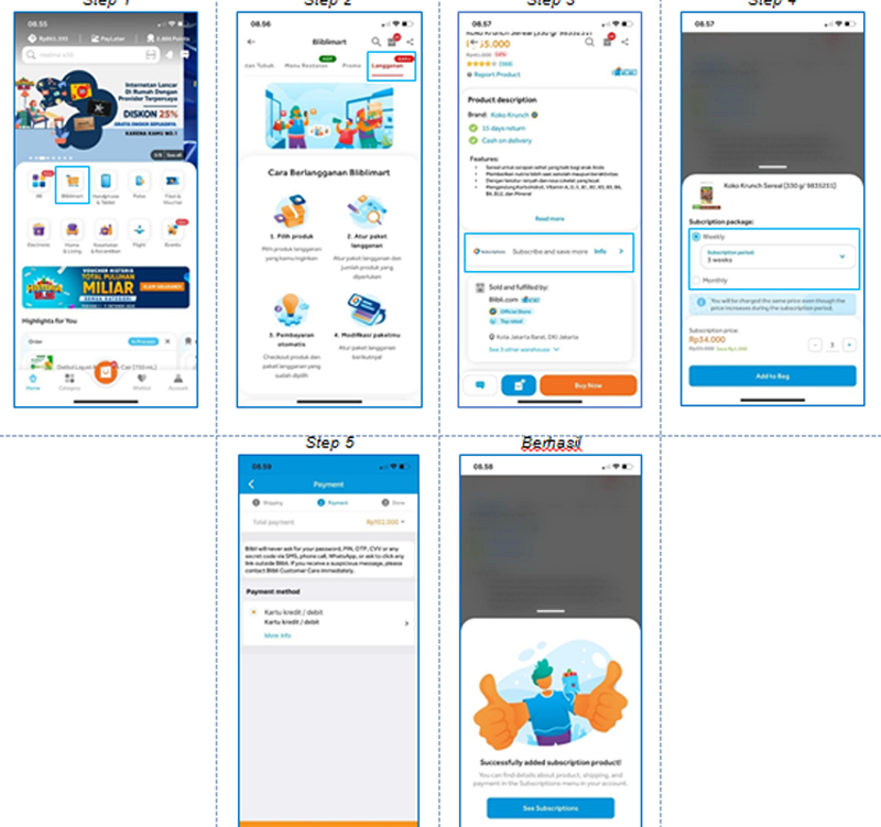 5. Lakukan check out dan pilih sistem pembayaran. Di fase peluncuran fitur Langganan, Blibli menyediakan opsi auto-debet melalui kartu debit dan kartu kredit. Blibli berencana memperluas opsi pembayaran, termasuk e-money
