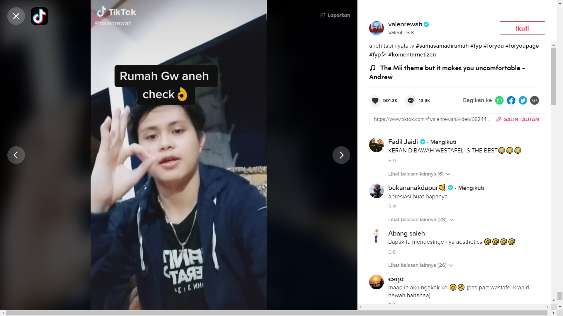 Valent tidak menyangka konten video isengnya ternyata jadi viral. Berawal dari Valent yang setelah sekian lama di rumah saja, ia jadi memperhatikan ada beberapa hal unik di rumahnya sendiri. Ia pun menyorot berbagai dekorasi dan perabotan rumahnya yang nyeleneh dengan judul konten “Rumahku Aneh, Check!”. Cat rumah yang warna-warni, jendela dengan pemandangan tembok, kolam renang tanpa air, dan beberapa hal aneh di rumahnya ini adalah hasil karya ayahnya, seorang mantan pelaut yang memang hobi memodifikasi perabotan rumah. Ternyata, konten iseng itu banyak ditonton, bahkan mencapai 2 juta views dalam waktu semalam!