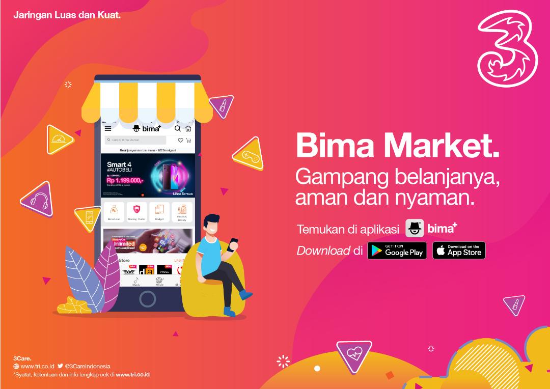 GANLOP.COM – 3 Indonesia kembali menghadirkan promo menarik melalui online marketplace bima market yang bisa ditemukan di dalam aplikasi bima+. Bima market memungkinan pengguna 3 untuk membeli berbagai produk mulai dari gadget, produk kesehatan dan kecantikan, fashion, elektronik hingga otomotif. 3 Indonesia melalui bima market telah menggandeng brand-brand resmi yang ada di Indonesia baik brand internasional maupun brand lokal. Sehingga semua produk-produk tersebut terjamin keaslian, dan keamanannya.