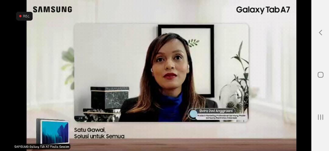 “Samsung selalu menghadirkan inovasi teknologi yang tidak hanya canggih, tapi juga memberikan manfaat bagi penggunanya dalam berbagai situasi. Galaxy Tab A7 menjadi solusi untuk menjawab berbagai tantangan yang timbul di masa new normal dari bekerja dan belajar dari rumah,” tutur Elvira Dwi Anggraeni, Product Marketing Professional, Samsung Electronics Indonesia.