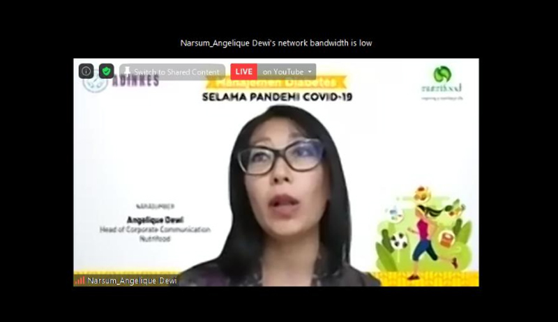 Head of Corporate Communication Nutrifood, Angelique Dewi mengatakan, ”Penting bagi masyarakat untuk menjalani gaya hidup sehat agar terhindar dari diabetes, sedangkan bagi diabetesi diharapkan lebih waspada selama masa pandemi COVID-19. Baik orang tanpa diabetes maupun penderita diabetes dianjurkan untuk terus menjaga pola makan sehat, menjaga berat badan, rutin berolahraga, mengonsumsi makanan tinggi serat, memperhatikan porsi dan waktu makan, serta membatasi GGL sesuai anjuran Kementerian Kesehatan RI. Selain itu, untuk mencegah risiko terinfeksi COVID-19, disarankan untuk menjaga kebersihan diri termasuk sering cuci tangan dengan sabun dan air mengalir, beraktivitas di rumah saja, istirahat cukup, dan jaga jarak serta gunakan masker saat berada di tempat umum.”