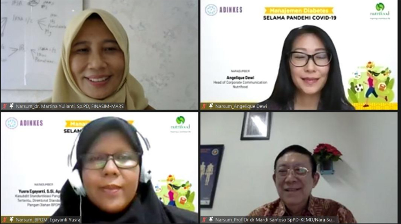 JAKARTA, GANLOP.COM – Memperingati Hari Diabetes Sedunia yang jatuh setiap tanggal 14 November, Nutrifood bekerja sama dengan BPOM dan ADINKES mengedukasi tenaga kesehatan dari level Puskesmas hingga Rumah Sakit mengenai manajemen diabetes selama pandemi COVID-19 dalam bentuk webinar dan dihadiri oleh 300 tenaga kesehatan dari seluruh Indonesia.