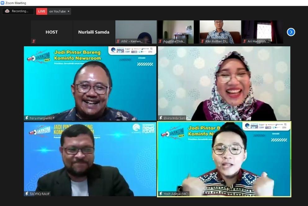 GANLOP.COM – Dalam rangka meningkatkan kualitas penyebaran informasi mengenai kebijakan, penyelenggaraan tugas pemerintahan dan pembangunan kepada masyarakat di seluruh Indonesia, Kementerian Komunikasi dan Informasi (Kemkominfo) selaku pengampu tugas dan fungsi sebagai Government Public Relation (GPR), melalui Direktorat Jenderal Informasi dan Komunikasi Publik Kemkominfo, kembali menggelar program JARKOM (Jadi Pintar Bareng Kominfo Newsroom) volume 2, dari tanggal 16-20 November 2020.