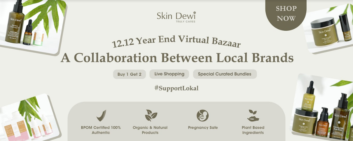 Skin Dewi mengambil momentum 12.12 untuk menyuarakan #supportlokal kepada masyarakat. Gerakan ini diharapkan dapat membantu perekonomian negeri dan membantu sesama merek lokal untuk dapat bertahan selama pandemi.