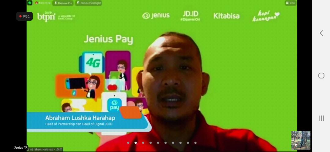 “Melalui kolaborasi dengan Jenius Pay, kami berharap para pelanggan kami dapat berbelanja kemudian bertransaksi dengan mudah, aman, dan nyaman. Dengan segala benefit dan fasilitas yang ditawarkan, kami berharap kerjasama ini dapat mendatangkan “joy” (sukacita) bagi seluruh pelanggan, pada sebelum, sesaat, dan setelah mereka berbelanja di JD.ID.”, ungkap Abraham.