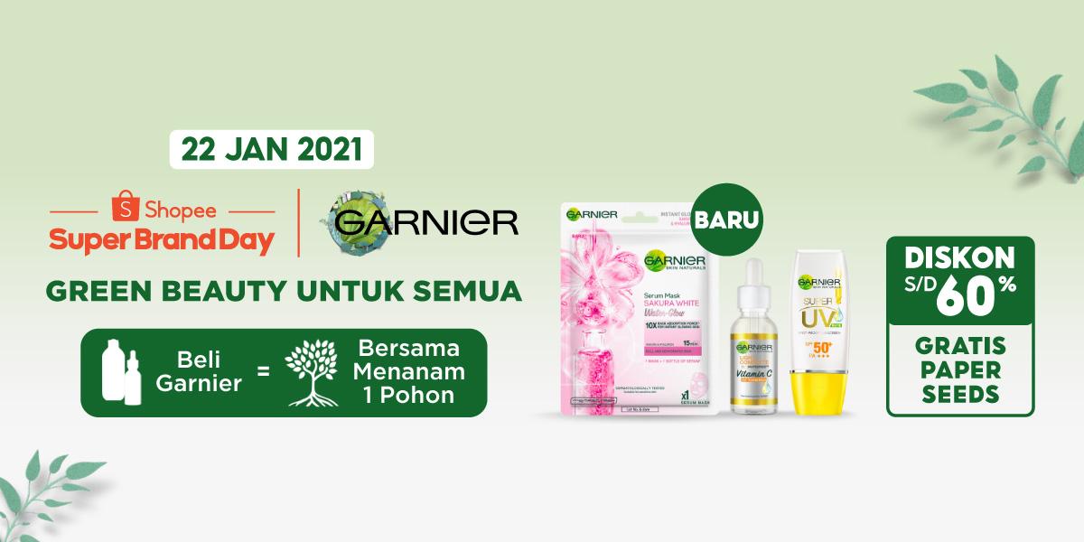 Untuk  menambah  kemeriahan  Shopee  2.2  Men  Sale,  bersamaan  dengan  peluncuran  toko Garnier Men, Garnier bekerjasama dengan  Shopee menghadirkan Garnier Super  Brand Day dengan tema Green Beauty yang akan berlangsung mulai dari 20 Januari hingga puncak nya di tanggal 22 Januari 2021 melalui Garnier Indonesia Official Shop dan Garnier Men Official Shop. Pengguna dapat  menikmati  rangkaian  penawaran menarik  hingga  60%  untuk  semua  produk Garnier dan Garnier Men serta peluncuran produk terbaru Garnier Men Shampoo Color dan Garnier Sakura White Water-Glow Serum Mask.