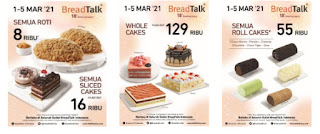 Promo ini berlaku selama 5 hari, yaitu mulai tanggal 1 – 5 Maret 2021 di semua outlet BreadTalk Indonesia dan promo ini tidak berlaku untuk pemesanan melalui delivery service.