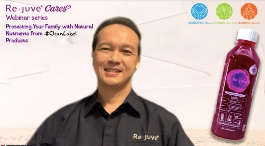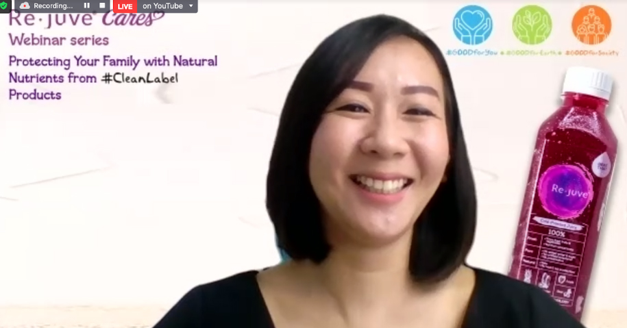 Dalam webinar yang bertajuk “Protecting Your Family with Natural Nutrients from Clean Label Products”, Re.juve menyampaikan mengenai konsep clean label yang diadaptasi sejak awal Re.juve berdiri, serta mengapa pemahaman mengenai hal ini penting bagi konsumen.
