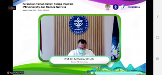 “Kami berharap Telaga Inspirasi dapat menjadi sarana edukasi, sarana rekreasi masyarakat umum dan kolegakolega dari IPB, meningkatkan kepedulian masyarakat, hingga berdampak positif bagi kesehatan masyarakat maupun kelestarian lingkungan. Program ini merupakan kelanjutan kerja sama antara IPB dan Danone yang telah terjalin. Sebelumnya, kami telah berkolaborasi dalam pembentukan Panduan Isi Piringku untuk anak usia 4-6 tahun, hingga panduan GESID terkait gizi dan kesehatan reproduksi bagi remaja”.