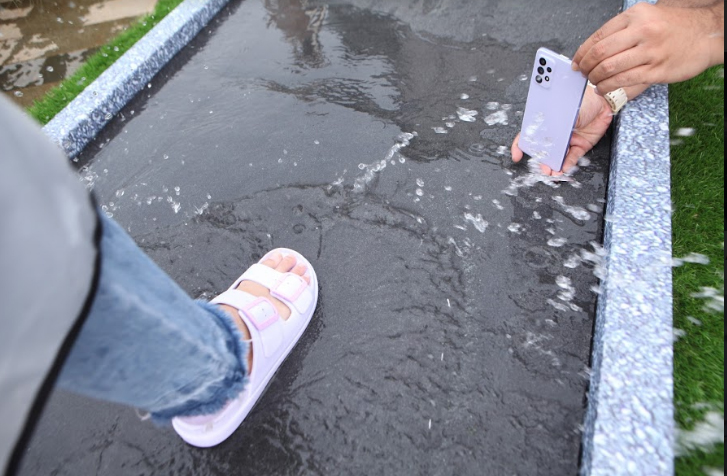 Bikin Video Super Slowmo Hujan yang Dramatis– Setiap hujan pasti kamu bikin konten galau dengan segelas kopi atau the di teras rumah ditemani dengan rintikan air hujan. Dengan fitur IP67 dan dukungan Awesome Camera pada Galaxy A52|A72, kamu bisa rekam video superslow motiondengan resolusi HD 960 fps di bawah air hujan dan bikin video Awesome tanpa khawatir smartphone kamu rusak karena terciprat air.
