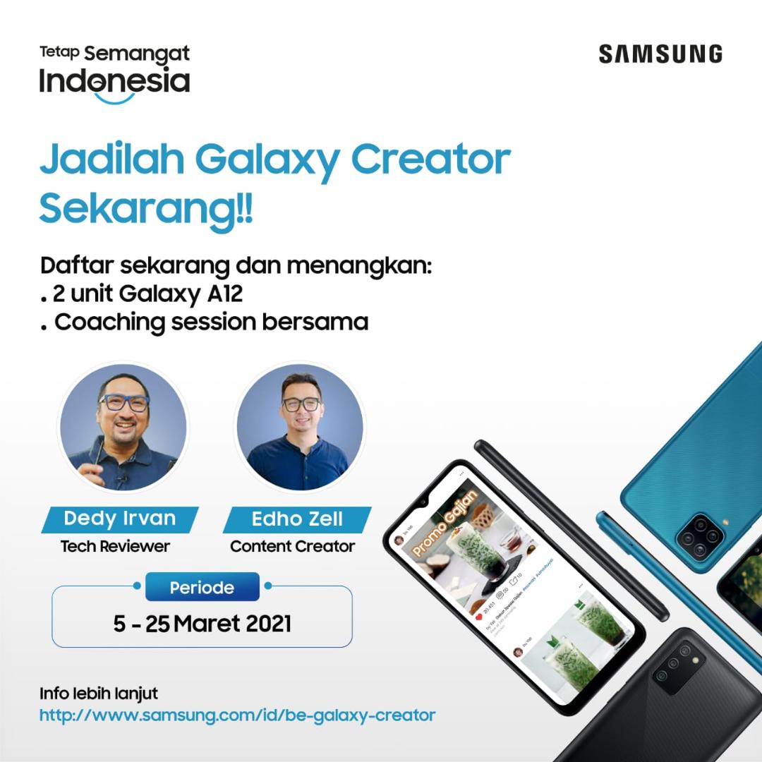 Dengan mengusung spirit #TetapSemangatIndonesia, Samsung Electronics Indonesia berinisiatif mendukung generasi muda mengejar passion menjadi tech reviewer profesional melalui program Be A Galaxy Creator. Pendaftaran program masih berlangsung sampai dengan 25 Maret 2021 untuk para generasi muda yang penuh semangat untuk berkarya melalui: http://www.samsung.com/id/be-galaxy-creator.