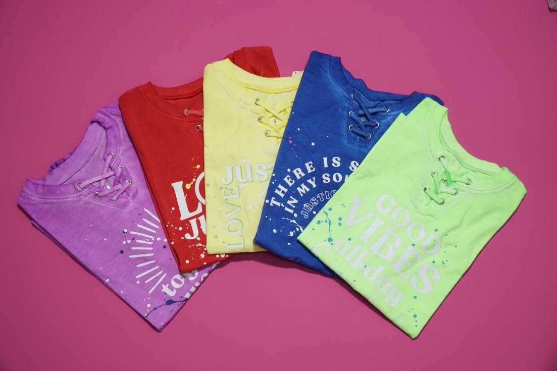 Terdapat 3 style yang dihadirkan Justice untuk koleksi kaos dengan bahan yang nyaman untuk dikenakan sehari-hari. Lace Up Tee, hadir dengan print good vibes yang membuat anak tetap tampil memukau menjadi pusat perhatian, dilengkapi dengan scrunchie, memberikan gaya yang lebih keren. Graphic Tee dengan pilihan terbaru juga hadir dengan model manis dan graphic unicorn dan sloth yang lucu, cocok dipakai untuk setiap aktivitas atau acara kasual. Modelnya yang versatile bisa dipadu-padankan dengan jeans, celana pendek, atapun rok.