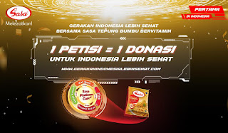 Sebagai bagian dari kampanye Sasa Tepung Bumbu Bervitamin dan juga sebagai brand Seasoning favorit milenials, SASA percaya bahwa masyarakat akan mendukung petisi ini sehingga mencapai 1 juta suara. Konsumen yang berpartisipasi dalam petisi Gerakan Indonesia Sehat juga berkesempatan mengikuti undian dengan hadiah menarik berupa 1 buah TV Samsung, 1 buah kompor Modena, 1 buah handphone Iphone 12 Pro, dan 3 buah penggorengan Minka Frying Pan Set.