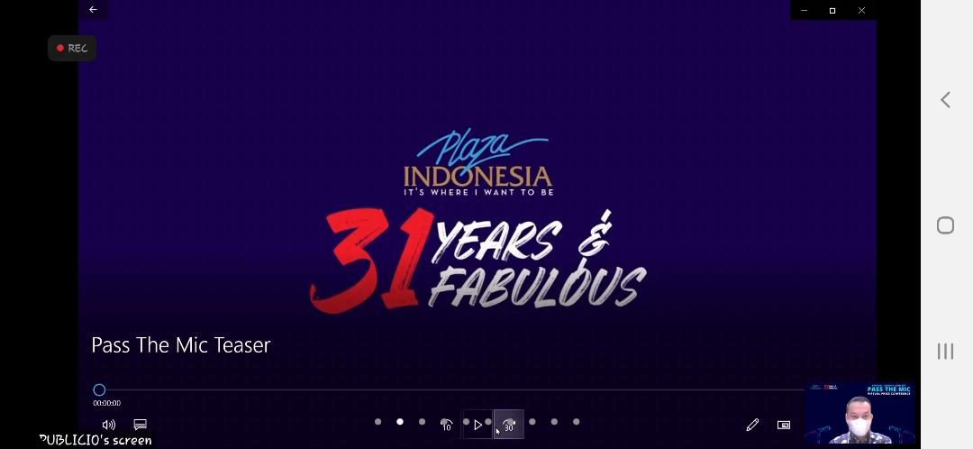 Zamri Mamat – General Manager Marketing Plaza Indonesia menyatakan, “Di hari jadi Plaza Indonesia ke-31, sebagai bentuk kepedulian kami atas  kondisi yang tengah berlangsung dan sesuai dengan ketentuan pemerintah, kami ingin merayakannya dengan berkontribusi untuk ibu dan anak yang terpapar COVID-19, dengan mempersembahkan konser amal secara virtual yang berjudul “Plaza Indonesia 31st Anniversary Virtual Charity Concert – Pass The Mic”, kami meluncurkan video bertema 90s Dance Music Edition – sebuah video konser amal hasil kolaborasi penyanyi Indonesia dan DJ. Melalui video tersebut kami mengajak berdonasi demi kesembuhan Ibu dan anak yang terpapar COVID-19, yang nantinya disalurkan melalui platform WeCare.id.”
